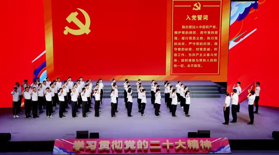 活動(dòng)中還組織了新黨員集體宣誓,對(duì)集團(tuán)先進(jìn)典型事跡進(jìn)行展播。慶?;顒?dòng)在全場(chǎng)合唱《沒(méi)有共產(chǎn)黨就沒(méi)有新中國(guó)》的歌聲中落下帷幕。