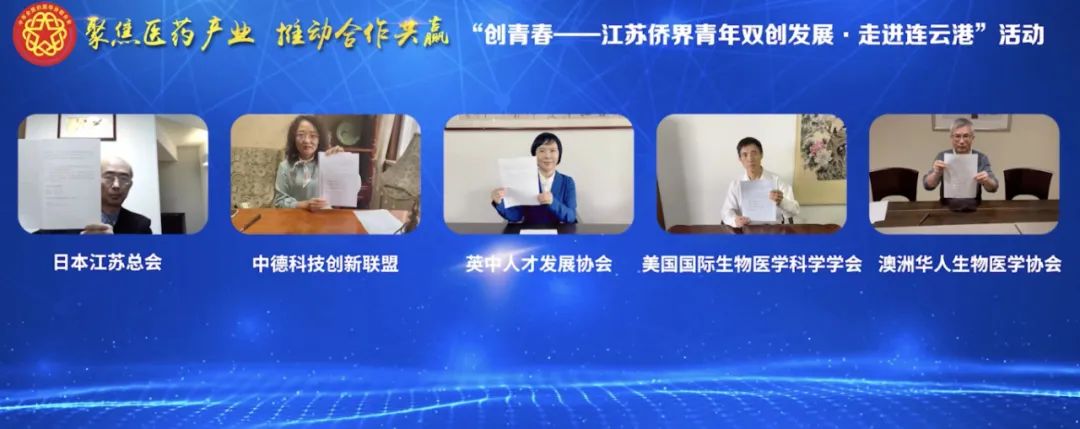 活動中,集團(tuán)公司通過線上方式,與日本江蘇總會、中德科技創(chuàng)新聯(lián)盟、英中人才發(fā)展協(xié)會、美國國際生物醫(yī)學(xué)學(xué)會、澳洲華人生物醫(yī)學(xué)科學(xué)協(xié)會等海外僑社團(tuán)簽署了合作意向書;集團(tuán)公司國際醫(yī)藥創(chuàng)新產(chǎn)業(yè)園與4家省內(nèi)僑青企業(yè)現(xiàn)場簽訂合作協(xié)議。