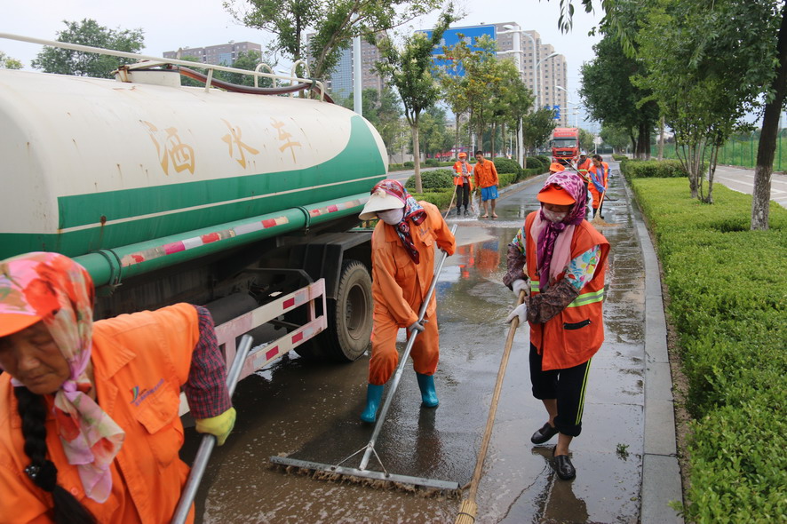 8月19日在火車站廣場及周邊路段,40多名綠化、保潔工人及灑水車、清掃車等全力保障火車站重點地段的環(huán)境衛(wèi)生,為過往旅客提供一個干凈整潔舒心的出行環(huán)境。據(jù)現(xiàn)場負責人龔本國介紹,隨著創(chuàng)衛(wèi)工作力度的進一步加大,開發(fā)區(qū)對我們火車站廣場及周邊路段的環(huán)境衛(wèi)生提出了更高的要求,我們對會泉路商戶門前的綠化進行了補植,種植紅葉石楠等苗木600多平方,每天專門安排一輛灑水車對火車站廣場及周邊路段進行巡回清洗清掃,確保路面干凈無塵土,對廣場站臺、護欄、果皮箱、路燈桿、花壇進行清理擦洗,對下水道進行清掏,蓋板更換維修。為確保創(chuàng)衛(wèi)工作任務高標準高質量完成,連日來,綠化養(yǎng)護、環(huán)衛(wèi)保潔工人天天早上6點上班,到晚上10點下班,中午吃飯休息只有一個小時,每天工作10多個小時,為創(chuàng)衛(wèi)工作做了很多實實在在的事情,他們真的很不易,很辛苦,只因有了他們的辛勤勞動、無私奉獻,城市環(huán)境衛(wèi)生才會越來越好。