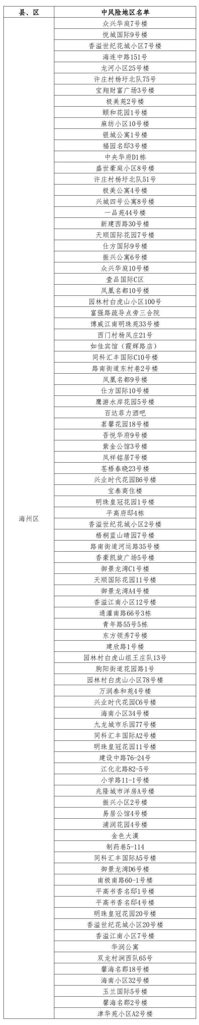 據(jù)國務院聯(lián)防聯(lián)控機制有關(guān)規(guī)定,經(jīng)市指揮部研究決定,自發(fā)布之日起,對我市部分區(qū)域疫情風險等級進行調(diào)整:開發(fā)區(qū)久和國際新城二期33號樓由中風險地區(qū)調(diào)整為低風險地區(qū)。其他地區(qū)風險等級不變。調(diào)整后全市現(xiàn)有90個中風險地區(qū)。 連云港市中風險地區(qū)(90個)