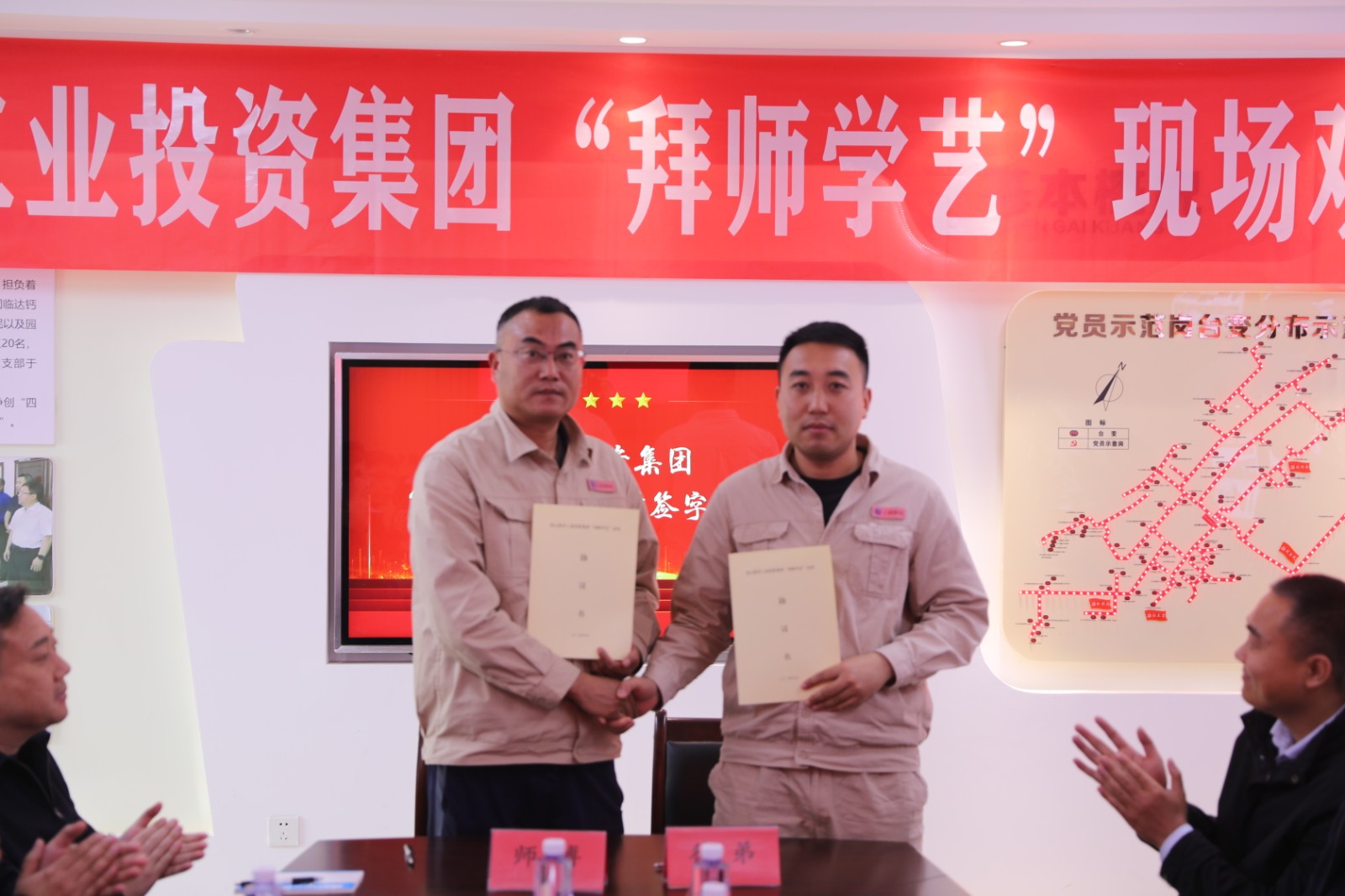觀摩結(jié)束后,活動進(jìn)入師徒代表交流環(huán)節(jié)。市勞模王建作為師傅代表率先發(fā)言,他結(jié)合自身帶徒經(jīng)歷,毫無保留地分享了培養(yǎng)新人的心得感悟。隨后,在全體與會人員的共同見證下,師徒雙方鄭重簽訂 "拜師學(xué)藝" 結(jié)對協(xié)議書,這一紙契約不僅是責(zé)任的傳遞,更是匠心的延續(xù)。活動現(xiàn)場還舉行了贈書儀式,一本本凝聚著知識與經(jīng)驗的書籍從師傅手中傳遞到徒弟手中,猶如一盞盞明燈,照亮了徒弟們的成長之路。