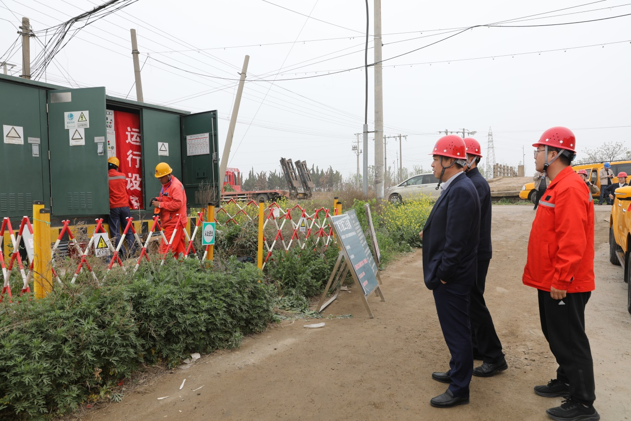 4月20日上午,公司黨委書記、總經(jīng)理宋晟曄,黨委副書記、工會(huì)主席李平一行到徐南供電所斷電施工現(xiàn)場(chǎng)進(jìn)行調(diào)研指導(dǎo),徐南供電所所長(zhǎng)周國(guó)成陪同調(diào)研。