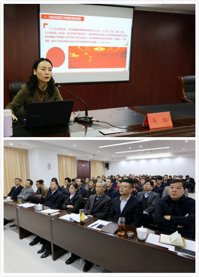本場報告會邀請市委黨校沿海開發(fā)研究室副教授馬紅主講。馬紅教授以《不忘初心,牢記使命,為實(shí)現(xiàn)中華名族偉大復(fù)興的中國夢不懈奮斗!》為主題,從鮮明主題、歷史性變革、主要矛盾的深淵影響、兩個一百年奮斗目標(biāo)、全面從嚴(yán)治黨等13個方面出發(fā),引用了古今中外大量案例,配合通俗的語言和生動的幻燈片,系統(tǒng)而詳實(shí)地向在座黨員介紹了“黨的十九大報告”精神與內(nèi)涵,并結(jié)合經(jīng)濟(jì)建設(shè)的相關(guān)內(nèi)容,給我公司的發(fā)展提出了寶貴意見。