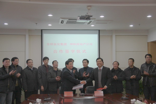 12月30日下午,集團公司領(lǐng)導(dǎo)顧永庚、胡建明、楊國新等來到灌云縣人民政府,與灌云縣委書記、縣人大常委會主任魯林、縣長陸永軍等領(lǐng)導(dǎo)親切會談,共商合作事宜。在會談中,集團公司與灌云縣人民政府簽訂了礦鹵鹽田合作協(xié)議,與坤和房地產(chǎn)公司簽訂了東園酒店合作協(xié)議,并委托公司代表集團公司,全權(quán)管理東園國際大酒店。
