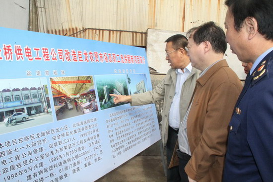 在巨龍農(nóng)貿(mào)市場(chǎng),范總向秦國(guó)丞副秘長(zhǎng)簡(jiǎn)要匯報(bào)了巨龍農(nóng)貿(mào)市場(chǎng)的基本情況以及改造方案,通過(guò)改造實(shí)現(xiàn)市場(chǎng)空間布局合理化、設(shè)施建設(shè)標(biāo)準(zhǔn)化、長(zhǎng)效菅理規(guī)范化的總體目標(biāo)。秦國(guó)丞副秘書(shū)長(zhǎng)對(duì)公司巨龍農(nóng)貿(mào)市場(chǎng)的改造方案給予較高評(píng)價(jià),充分肯定了公司在創(chuàng)建國(guó)家文明衛(wèi)生城市、加強(qiáng)我市菜藍(lán)子工程建設(shè)、提升群眾幸福指數(shù)方面作出的貢獻(xiàn);同時(shí),要求我公司繼續(xù)深入調(diào)研,盡快制定具體實(shí)施方案,報(bào)政府部門(mén)審批;并指示隨行的有關(guān)部門(mén)人員,要給予全力配合,對(duì)改善民生工程開(kāi)綠燈。(司宣 盧正清)