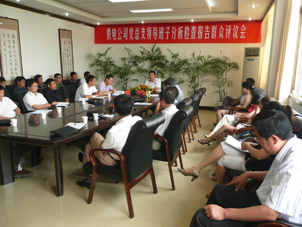 6月23日,我公司召開了黨總支領(lǐng)導(dǎo)班子分析檢查報(bào)告群眾評(píng)議會(huì),機(jī)關(guān)中層管理人員、各供電所領(lǐng)導(dǎo)班子成員及部分職工代表參加了評(píng)議。