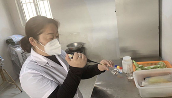 “疫情期間,每天都要隨機選取攤位進行取樣,對蔬菜、水果、生鮮肉類、干制品等的農(nóng)藥殘留、非法添加物、濫用添加劑等進行檢測,檢測項目涵蓋常見的食用農(nóng)產(chǎn)品風(fēng)險項目,俗話說民以食為天,所以一定把好群眾的‘入口’關(guān),讓居民吃得放心,這樣我的工作才有價值?!币咔榉揽孛钕逻_后,陸麗麗同志被巨龍農(nóng)貿(mào)市場服務(wù)中心安排負(fù)責(zé)市場內(nèi)的農(nóng)產(chǎn)品檢測工作,她放棄春節(jié)節(jié)假日休息,即刻上陣,每日對市場攤位農(nóng)產(chǎn)品進行抽檢,全力把好入市食用農(nóng)產(chǎn)品質(zhì)量關(guān),維護銷售環(huán)節(jié)食用農(nóng)產(chǎn)品消費安全。
