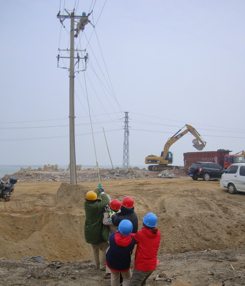 11月17日,臺(tái)北供電所全體職工放棄休息,在開(kāi)發(fā)區(qū)大浦工業(yè)園區(qū)架設(shè)供電線路,保證園區(qū)建設(shè)單位按時(shí)開(kāi)工。