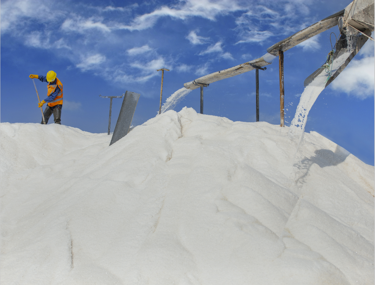 “4號扒鹽機(jī)組扒鹽即將結(jié)束,10班、11 班的全體人員 8 點 10 分到11班進(jìn)行搬機(jī)……”在日曬制鹽公司的灘頭,不遠(yuǎn)處的“大喇叭”傳達(dá)著生產(chǎn)任務(wù)。連日來,日曬制鹽公司全力推進(jìn)扒鹽生產(chǎn),已扒鹽 16 萬噸,長鹽 21 萬噸,廣大員工激情奮戰(zhàn)在鹽業(yè)生產(chǎn)第一線。5月1日一大早,天剛蒙蒙亮,鹽池里便傳來“轟隆隆”的響聲,工人操作機(jī)械活碴。晴好的天時為忙碌的工人增添了些許奮斗的印跡,臉上的汗珠透過太陽反照出耀眼的光芒。