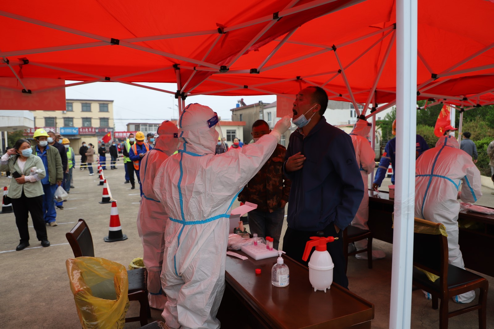 為了配合做好這一輪的全民核酸檢測工作,從核酸檢測前期的場地準(zhǔn)備到居民隊伍的秩序維持,從協(xié)助醫(yī)護(hù)人員做好消毒、信息錄入到現(xiàn)場管理,灌西投資公司廣大志愿者奮勇上前,全過程參與其中。由于之前天氣有雨,早在凌晨3點(diǎn)多鐘,公司志愿者們就來到現(xiàn)場部署核酸檢測場地,及時做好設(shè)置隔離區(qū),劃出一米線等工作,確保了早上5點(diǎn)半點(diǎn)準(zhǔn)時開始檢測。