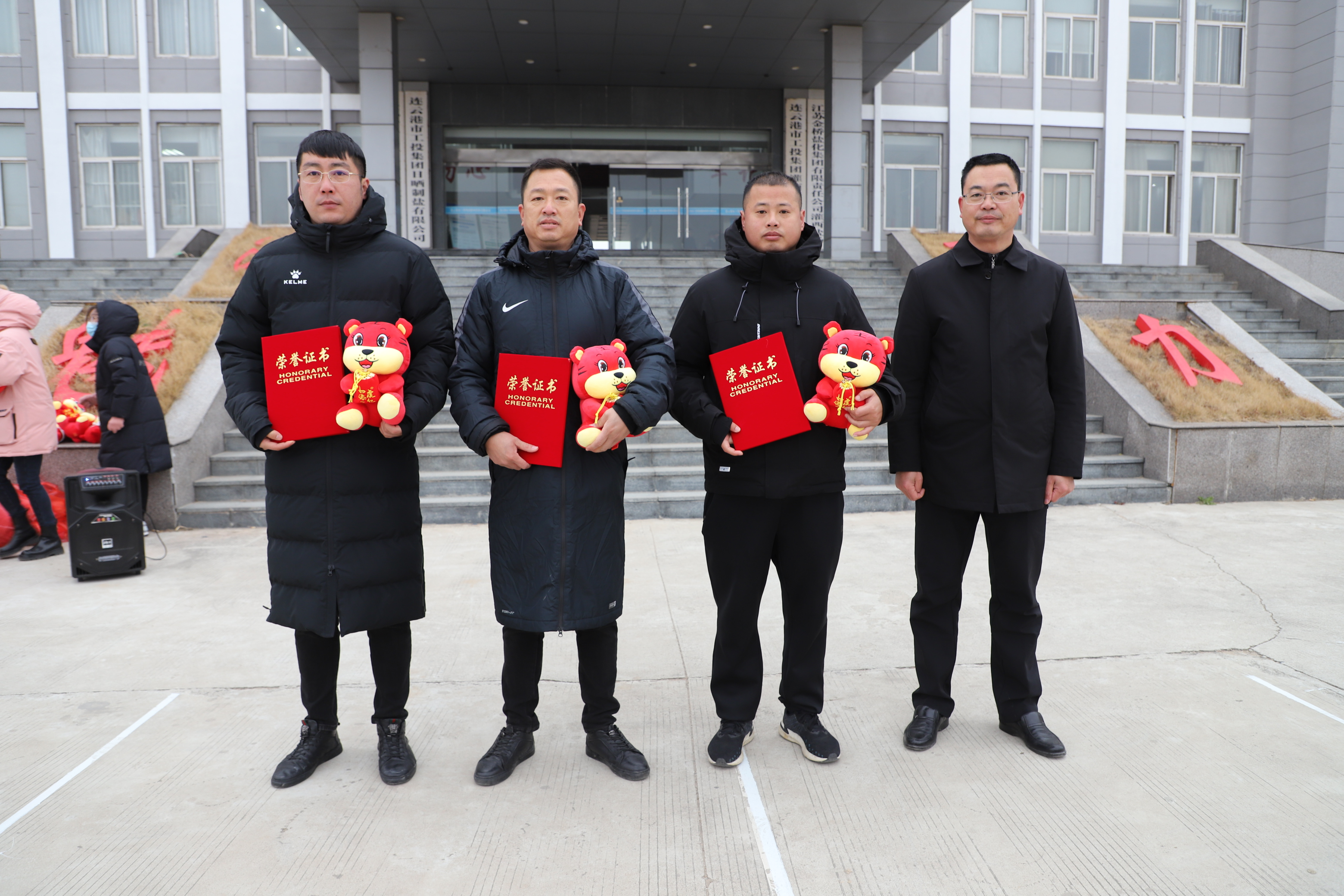 閉幕式上宣布新河制鹽公司、埒南制鹽公司、宵洋物流公司分獲團(tuán)體一至三名,并頒發(fā)團(tuán)體以及個(gè)人榮譽(yù)證書,為每位獲獎(jiǎng)?wù)甙l(fā)放灌西投資公司吉祥物——“鹽寶寶”。(西宣)