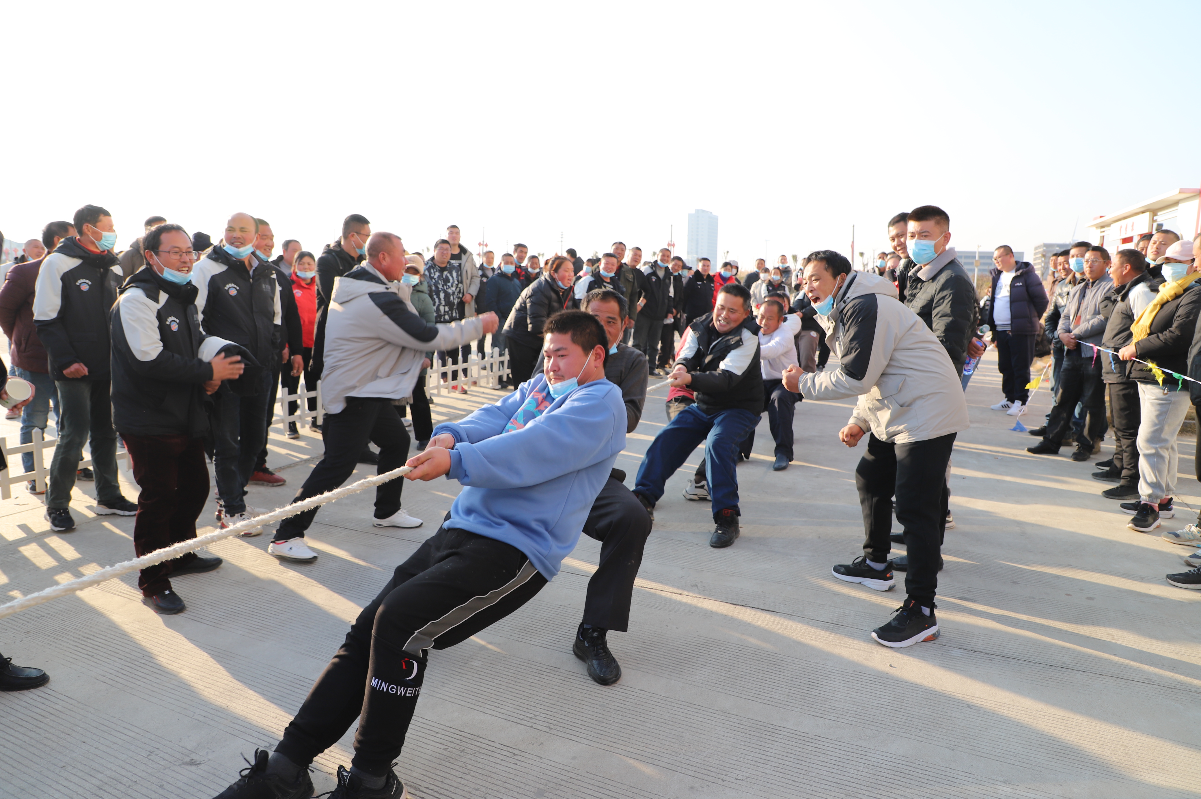 開幕式結(jié)束以后,緊張激烈的拔河比賽立即展開。由新河、埓南、宵洋等單位組織的13支參賽隊(duì)伍按照抽簽順序逐一上臺亮相。賽場上,鼓舞聲、吶喊聲此起彼伏,參賽隊(duì)員們團(tuán)結(jié)協(xié)作、不到最后一刻永不言棄的精神贏得了在場觀眾的陣陣掌聲。經(jīng)過近一個小時的激烈角逐,最終埓南制鹽分公司一隊(duì)力壓群雄,奪取拔河比賽第一名,新河制鹽分公司二隊(duì)、新河制鹽分公司一隊(duì)及宵洋物流公司代表隊(duì)分獲二至四名。