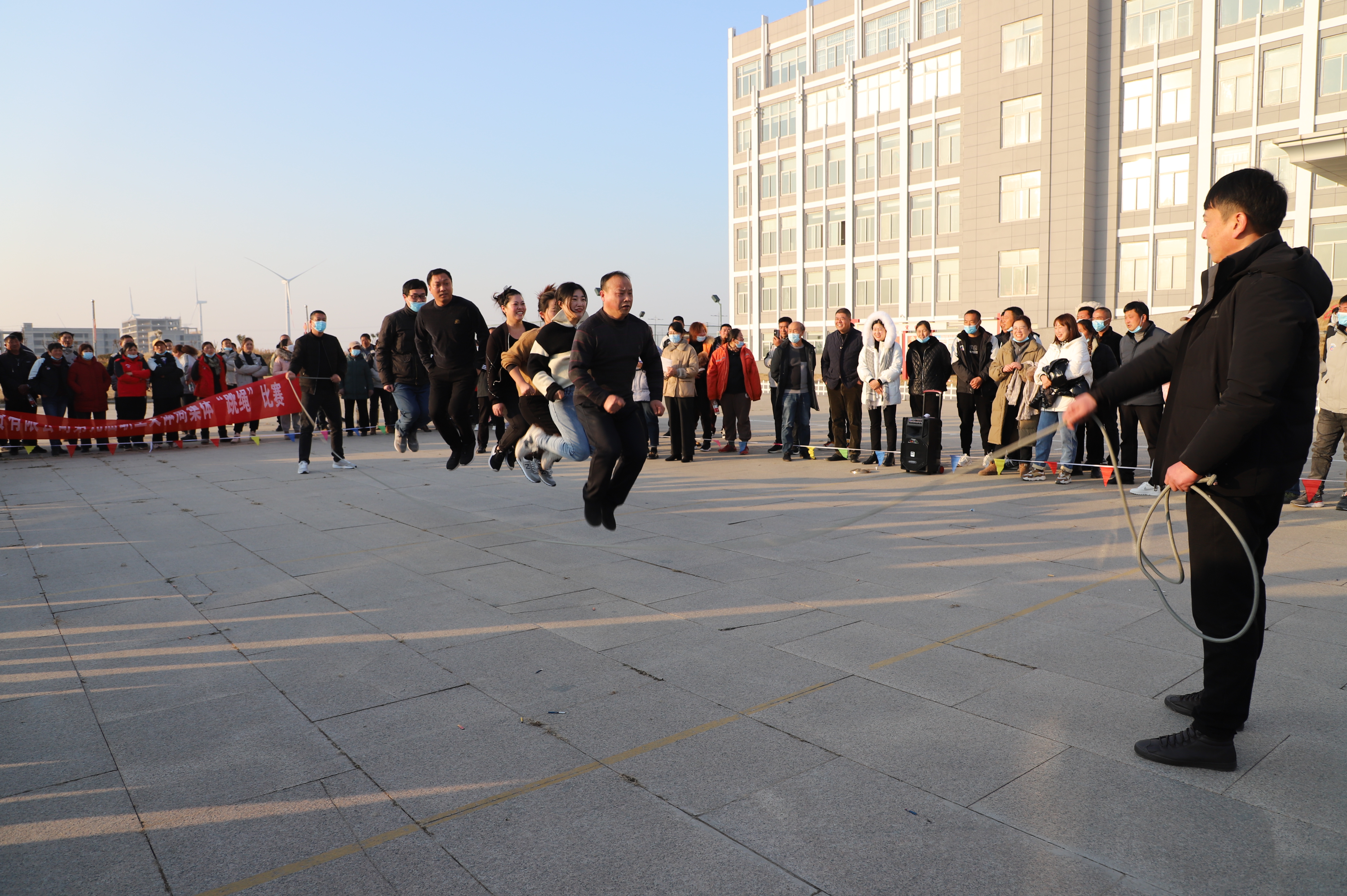 隨后進(jìn)行跳繩比賽,來自南翼、新河、埒南等10支參賽隊(duì)伍逐一上臺比賽,觀眾隨著場上比賽隊(duì)員跳繩的節(jié)奏,不約而同地打著節(jié)拍、數(shù)著數(shù),最終埒南制鹽公司代表隊(duì)?wèi){借刻苦訓(xùn)練與創(chuàng)新——參賽隊(duì)員手牽手共同協(xié)作,奪得第一名,新河制鹽公司、宵洋物流公司、生產(chǎn)服務(wù)中心分獲二至四名。(西宣)