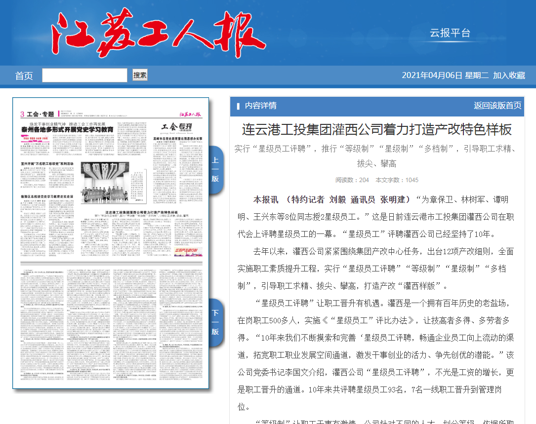 “星級員工評聘”讓職工晉升有機(jī)遇。灌西是一個(gè)擁有百年歷史的老鹽場,在崗職工500多人,實(shí)施《“星級員工”評比辦法》,讓技高者多得、多勞者多得。“10年來我們不斷摸索和完善‘星級員工評聘,暢通企業(yè)員工向上流動(dòng)的渠道,拓寬職工職業(yè)發(fā)展空間通道,激發(fā)干事創(chuàng)業(yè)的活力、爭先創(chuàng)優(yōu)的潛能?!痹摴军h委書記李國文介紹,灌西公司“星級員工評聘”,不光是工資的增長,更是職工晉升的通道。10年來共評聘星級員工93名,7名一線職工晉升到管理崗位。
