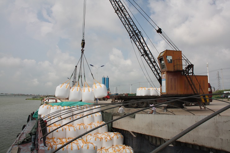 8月3日上午9點左右,當筆者來到宵洋物流公司五灌河碼頭時,這里已經(jīng)到處是工人們忙碌的身影,吊機揮舞巨臂、車輛川流不息、現(xiàn)場管理者來回奔忙指揮、作業(yè)人員揮汗如雨緊張忙碌。