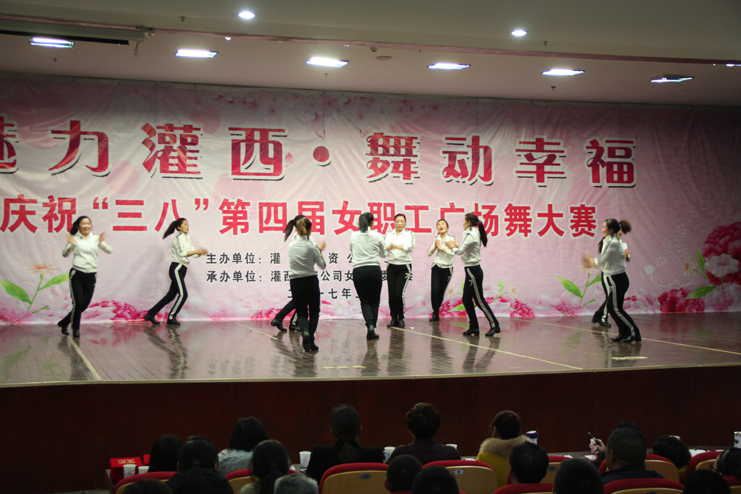 3月8日下午,灌西投資公司第四屆“魅力灌西•舞動(dòng)幸福”廣場(chǎng)舞比賽在灌云縣臨港產(chǎn)業(yè)區(qū)管委會(huì)禮堂舉行,由公司各單位的女工組成的8支代表隊(duì)參加角逐,廣大女工用婀娜的舞姿和精彩的表演慶祝國(guó)際“三八”婦女節(jié)的到來(lái),觀看比賽的職工群眾有400余人。