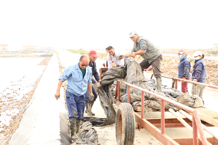 國(guó)慶假日期間,日曬制鹽公司廣大員工堅(jiān)守生產(chǎn)第一線,加強(qiáng)值班,強(qiáng)化“三雨”操作,及時(shí)拉放塑布,確保降雨鹽斤不受損。5號(hào)起,小雨還沒(méi)有停,就全面投入到扒鹽工作中來(lái),他們正擼起袖子加油干,在金秋收獲的季節(jié)里,用靚麗的業(yè)績(jī)迎接黨的十九大的召開(kāi)。(季興勝)