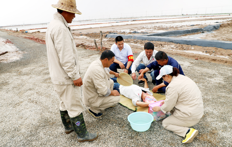 此次演練過(guò)程中,安全監(jiān)管部李長(zhǎng)軍主持了這次演練活動(dòng),埒南制鹽分公司職工及管理人員參與其中,演練模擬現(xiàn)場(chǎng)有三個(gè):1、職工在灘頭塑池堰上突然中暑(重度)。2、職工在廩基小鹽化鹵調(diào)鹵中接觸老化線路接頭時(shí)不慎觸電(傷害較重)。3、職工在上班途中三輛電瓶車相撞(跌傷較重)。在救援過(guò)程中,大家各司其職,齊心協(xié)力,配合默契,有條不紊成功完成了此次演練活動(dòng)。通過(guò)這次應(yīng)急演練,進(jìn)一步提高了公司員工應(yīng)對(duì)緊急事件的自我保護(hù)和防衛(wèi)能力,保證員工在發(fā)生突發(fā)事件時(shí),能熟練應(yīng)對(duì)、有序救援,最大限度地減少事故帶來(lái)的損害,切實(shí)保護(hù)員工的安全。