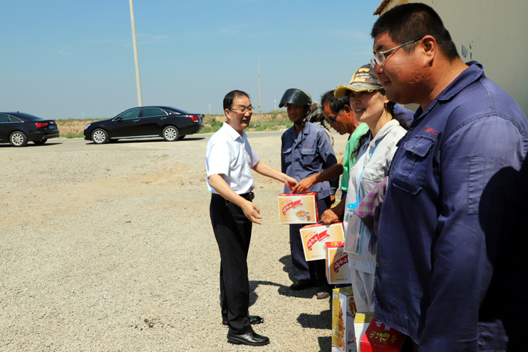 入伏以來,持續(xù)高溫,為確保一線生產單位工作順利開展,保證員工身體健康。7月18日上午,集團公司總經理胡建明、副總經理張其海一行深入日曬制鹽公司走訪慰問一線職工,把綠豆、飲料等慰問品送到他們手中,在炎炎夏季,為一線職工送去集團公司領導的深切關懷與陣陣清涼。