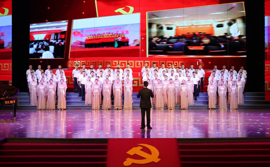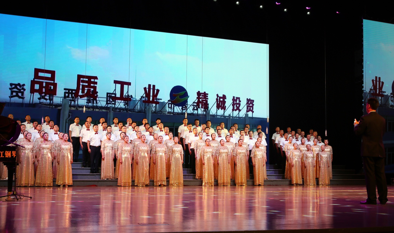 “風(fēng)在吼,馬在叫,黃河在咆哮……”嘹亮的歌聲在市藝術(shù)中心舞臺(tái)上響起, 6月28日下午,集團(tuán)公司2019年“感黨恩、頌祖國、贊工投”大合唱比賽在此隆重舉行,灌西公司百人合唱團(tuán)獲得二等獎(jiǎng),集團(tuán)黨委書記、董事長楊龍為灌西合唱團(tuán)頒發(fā)獎(jiǎng)杯。