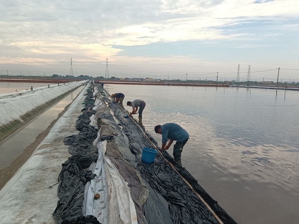 鏖戰(zhàn)酷暑,保目標(biāo)。當(dāng)前,正是原鹽生產(chǎn)的關(guān)鍵時期,面對高溫酷暑的嚴(yán)重考驗,該公司干部職工迎難而上,戰(zhàn)高溫斗酷暑、搶晴天保生產(chǎn),全力投入到高溫生產(chǎn)、保鹽保鹵等工作中,及時修補塑布,加強塑布收放系統(tǒng)維護保養(yǎng),隨時做好拉塑布準(zhǔn)備工作;管理人員以上率下,實施24小時現(xiàn)場值班機制,強化除硫制鹽工藝,抓實抓細(xì)原料鹵水、結(jié)晶池等源頭過程管控,確保全年產(chǎn)鹽60萬噸。驕陽烈日下,萬畝銀灘鹵水潺潺、“五彩斑斕”,產(chǎn)業(yè)工人在39℃高溫的戶外勞作,在熱氣蒸人的鹵水鹽田里,揮汗如雨,構(gòu)成了一幅最美的“鹵上芭蕾”。(許東彥)