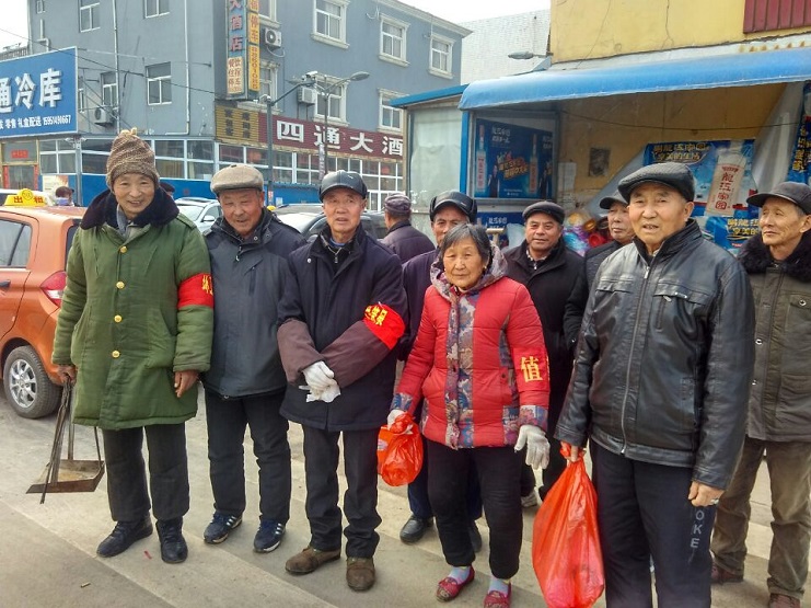 社區(qū)老年志愿者開展環(huán)境衛(wèi)生清理活動