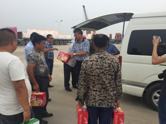 2017年7月18日星期二下午灌西鹽場投資公司領(lǐng)導(dǎo)到宵洋物流有限公司碼頭送清涼看望一線員工!在黨委書記董事長王德志同志、總經(jīng)理李國文同志、工會主席王保平同志的帶領(lǐng)下親自到我宵洋物流有限公司碼頭看望一線員工,送清涼。炎炎夏日,酷暑當(dāng)頭一線員工永遠(yuǎn)沖鋒在前,領(lǐng)導(dǎo)的關(guān)懷更是永不停止!宵洋物流全體員工致謝?。ㄏ笸跞唬?br />