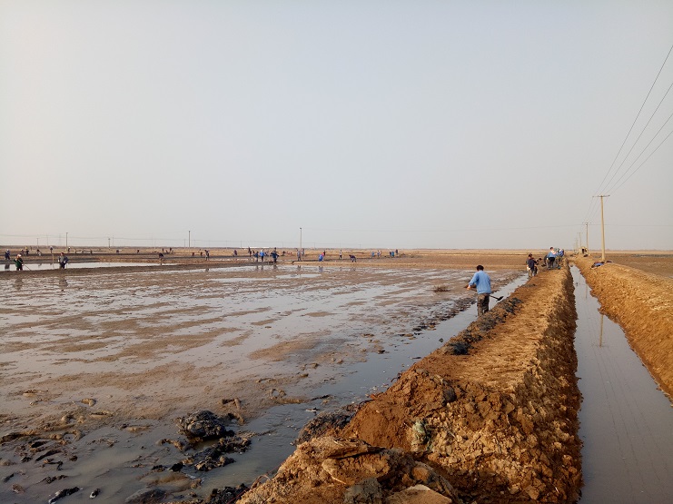 近日,實業(yè)公司制鹽分公司海鹽基地,一班班組灘場改造呈現(xiàn)出一片繁忙的景象。日曬制鹽新河制鹽分公司、埒南制鹽分公司等兄弟單位近兩日,輪流調(diào)動數(shù)百余人參加實業(yè)公司海鹽基地撈溝做埝大會戰(zhàn)?,F(xiàn)場場面十分壯觀,大家干得熱火朝天:有挖泥澆水的、踩泥打堰的、抹埝找平的......員工們齊心協(xié)力地打好這次攻堅戰(zhàn)。本次共計撈溝做埝近四千米。實業(yè)公司全體員工對兩公司的辛勤勞動給予了贊許和由衷的感謝。(史祥燕)