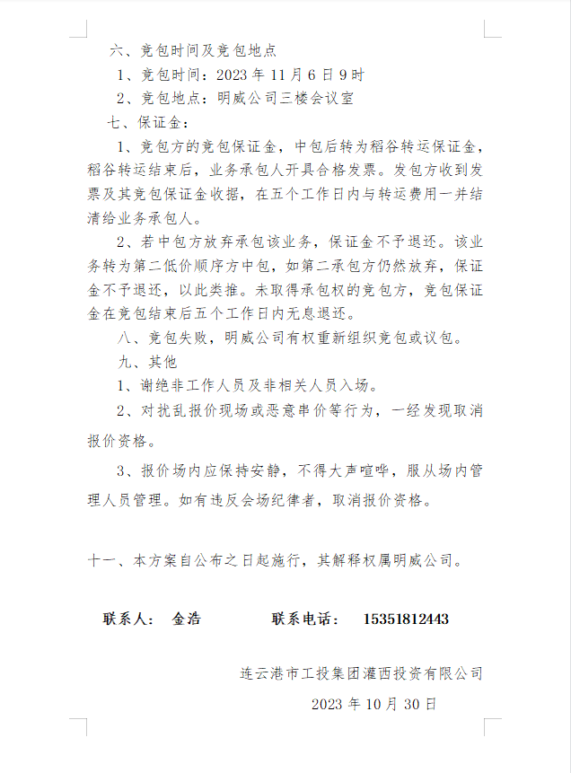 2023年灌西投資公司秋收稻谷轉(zhuǎn)運 業(yè)務發(fā)包二次公告