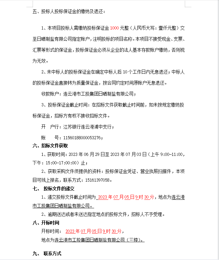 連云港市工投集團(tuán)日曬制鹽有限公司軸承等物資招標(biāo)公告