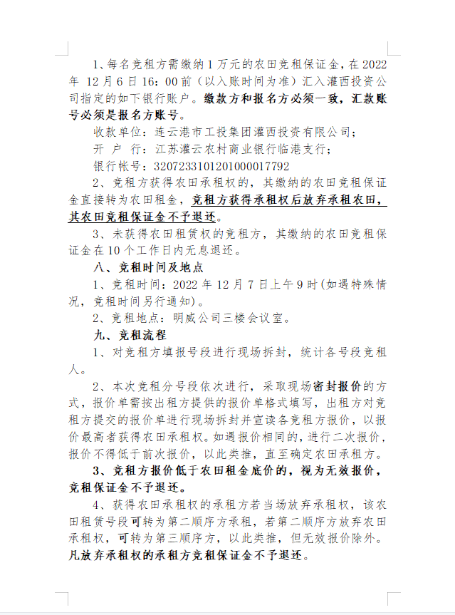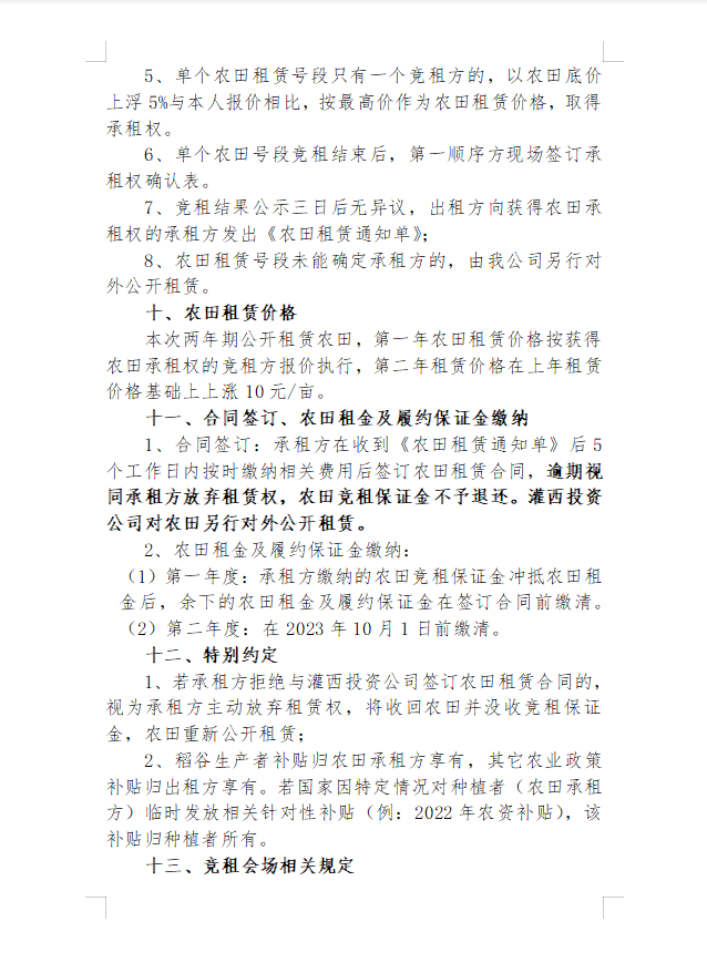 2022年灌西投資公司八十四萬二區(qū)農田公開競租公告