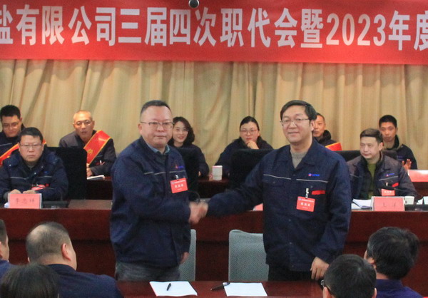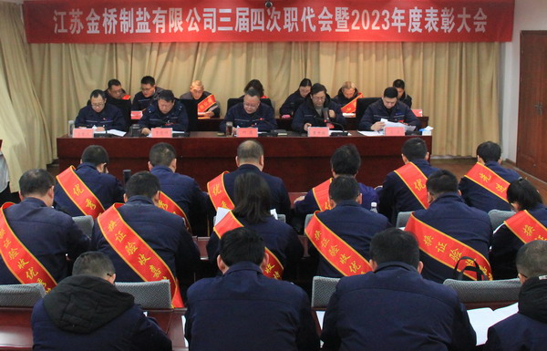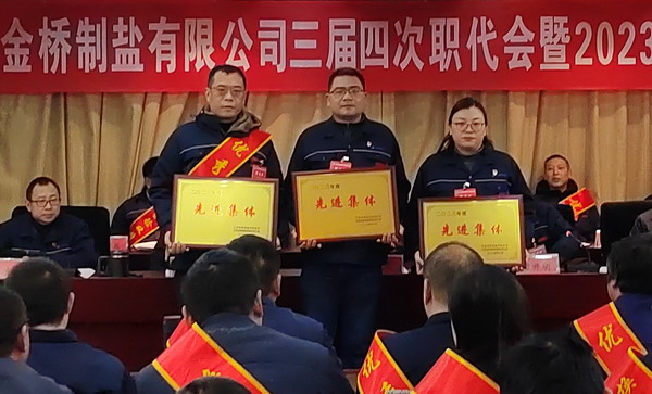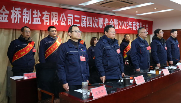 2月2日上午,金橋制鹽公司召開三屆四次職代會暨2023年度表彰大會。公司黨委書記、董事長、總經(jīng)理田磊作《工作報告》,黨委副書記、紀(jì)委書記、工會主席曹開明主持大會,公司領(lǐng)導(dǎo)班子成員及職工代表出席會議。