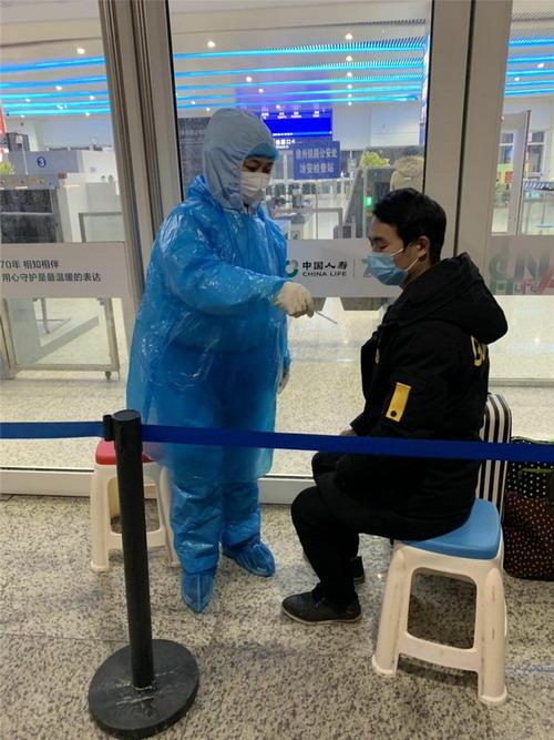 朱詠梅是來自江蘇金橋制鹽有限公司的普通員工,在連云港市志愿者協(xié)會的統(tǒng)一安排下,每天到連云港市高鐵站測溫點(diǎn)配合醫(yī)務(wù)人員為乘客檢測體溫,并協(xié)助醫(yī)務(wù)人員對體溫出現(xiàn)異常的乘客進(jìn)行復(fù)查。每天的服務(wù)都到深夜零點(diǎn),等到送走最后一位乘客才回家。