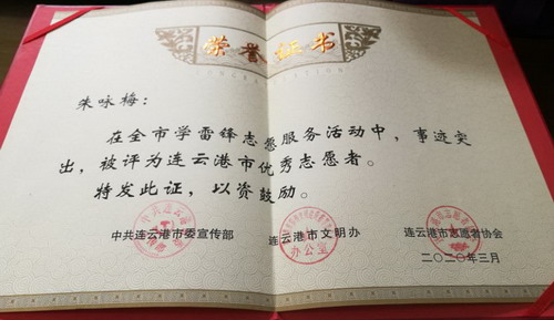 參加疫情防控志愿服務(wù)以來,朱詠梅一天都沒有休息,已為超過2萬名旅客檢測體溫。由于事跡突出,在全市學(xué)雷鋒志愿服務(wù)活動中,被評為連云港市優(yōu)秀志愿者。工作期間,渴了不敢喝水,餓了就吃泡面,雖然很辛苦,但是她覺得很自豪,她說:“我是一名預(yù)備黨員,也是一名國企職工,比起那些奮戰(zhàn)在疫情防控一線的醫(yī)務(wù)人員,我做的太少了;當(dāng)前,全國人民都投入到新冠肺炎疫情防控工作中來,我只是為防控工作貢獻(xiàn)了自己的微薄的力量,我相信只要我們團(tuán)結(jié)一心、眾志成城,就一定能早日戰(zhàn)勝疫情,早日打贏這場沒有硝煙的戰(zhàn)爭!(凌家佳)