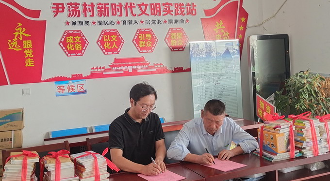 公司黨委副書記、紀委書記、工會主席曹開明,灌南縣北陳集鎮(zhèn)尹蕩村黨總支書記孫克玉代表共建雙方續(xù)簽共建協(xié)議;向該村贈送了名人傳記、農(nóng)技推廣和文學(xué)藝術(shù)等各類圖書100余冊,向鄉(xiāng)民贈送了文明共建紀念品;參觀了該村黨員活動室、黨史室、村史陳列室,聽取了孫克玉對該村概況的介紹。
