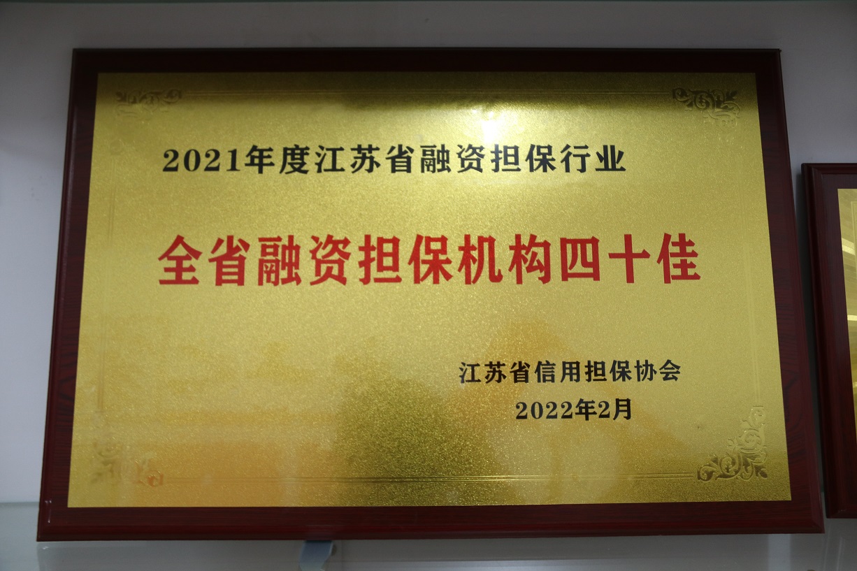 被省擔(dān)保協(xié)會評為“江蘇省2021年度融資性擔(dān)保機(jī)構(gòu)四十佳”。