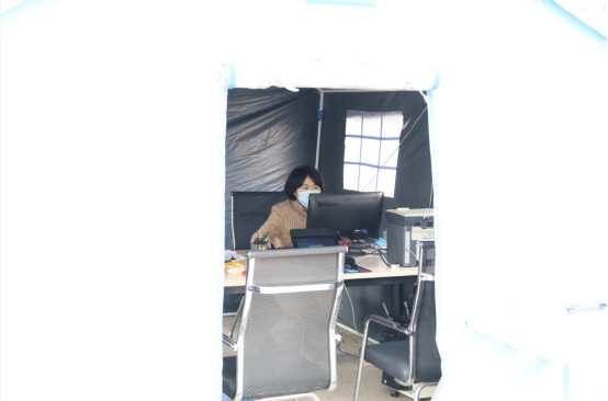 4月6日,工投金融板塊復(fù)工的第一天,來辦理業(yè)務(wù)的人員發(fā)現(xiàn),公司院內(nèi)樹立著一頂嶄新的帳篷,電腦、桌椅、打印機(jī)等辦公設(shè)備放置其中,酒精、免洗液、口罩等防疫物資擺放在帳外醒目位置。 這是工投金融板塊為保證疫情期間疫情防控與業(yè)務(wù)服務(wù)兩不誤,專門打造的特色“防疫業(yè)務(wù)服務(wù)窗口”。 正值疫情期間,而金融板塊的業(yè)務(wù)涉及面廣,流程嚴(yán)謹(jǐn),尤其是窗口業(yè)務(wù)所涉及的簽字、蓋章等環(huán)節(jié)都需要與外來人員面對(duì)面現(xiàn)場辦理,如何化解因疫情而產(chǎn)生的業(yè)務(wù)開展難題,就成為擺在金融板塊干部職工眼前的一大問題。