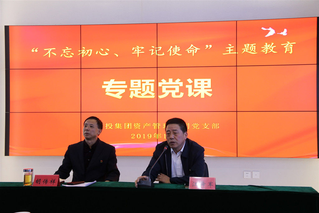 | 為教育引導(dǎo)黨員干部不忘初心,牢記使命,擔當作為,開拓創(chuàng)新,奮力譜寫金融工作新篇章,10月10日下午,資產(chǎn)管理公司黨支部舉行“不忘初心、牢記使命”主題教育黨支部書記講黨課活動,資產(chǎn)管理公司黨支部書記、董事長胡傳祥同志講授“初心不改,擔當作為,創(chuàng)造無愧于時代的工作業(yè)績”主題黨課,集團黨委第一指導(dǎo)組同志到會指導(dǎo)。