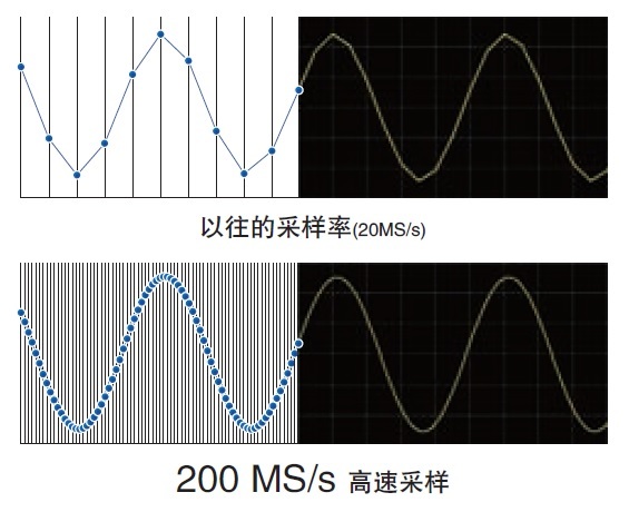 通過(guò)包絡(luò)線的測(cè)量方法,進(jìn)行100MS/s的過(guò)采樣同時(shí),能夠記錄設(shè)置間隔的max值和min值。