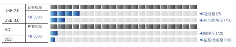 而且,MR6000安裝了新接口,數(shù)據(jù)傳輸速度是舊機(jī)型的32倍。