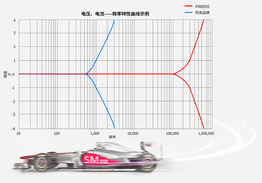 PA8000是行業(yè)內(nèi)為數(shù)不多的一款具有0.01%精度,電流與電壓頻率帶寬高達(dá)5MHz的功率分析儀,完全滿足未來以SiC為代表的高速開關(guān)設(shè)備的功率測量。