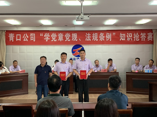 為推動(dòng)黨員干部進(jìn)一步掌握基本標(biāo)準(zhǔn),增強(qiáng)黨的意識(shí)、黨員意識(shí)、紀(jì)律意識(shí),更好地堅(jiān)守初心、踐行使命,6月23日上午,青口公司舉辦“學(xué)黨章黨規(guī)、法規(guī)條例”知識(shí)搶答賽活動(dòng)。來自公司8個(gè)支部的24名選手參加了比賽。公司黨委班子成員出席了活動(dòng)。機(jī)關(guān)全體管理人員、各單位黨政工負(fù)責(zé)人到場(chǎng)觀看。