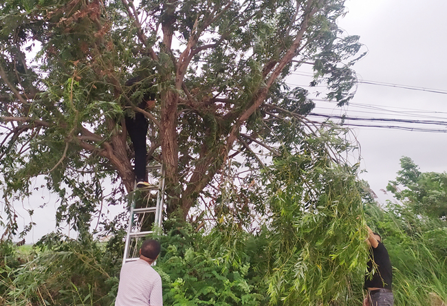 隨著第6號(hào)臺(tái)風(fēng)“煙花”逐漸登陸,連日來,泰祥公司積極做好防臺(tái)風(fēng)各項(xiàng)準(zhǔn)備,針對(duì)場(chǎng)區(qū)主干道行道樹受臺(tái)風(fēng)因素影響組織員工進(jìn)行巡查樹木狀況,在做好安全工作的前提下,將斷枝、枯枝修剪清理,有效為安全提供保障。(趙新勇)