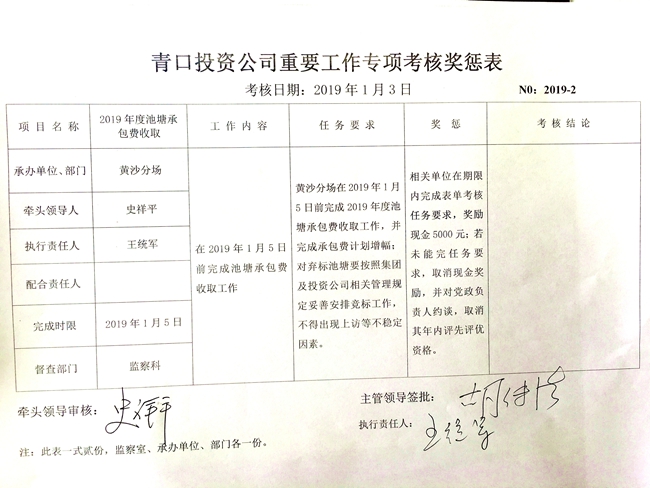 【表單考核】青口投資公司重要工作專(zhuān)項(xiàng)考核獎(jiǎng)懲表