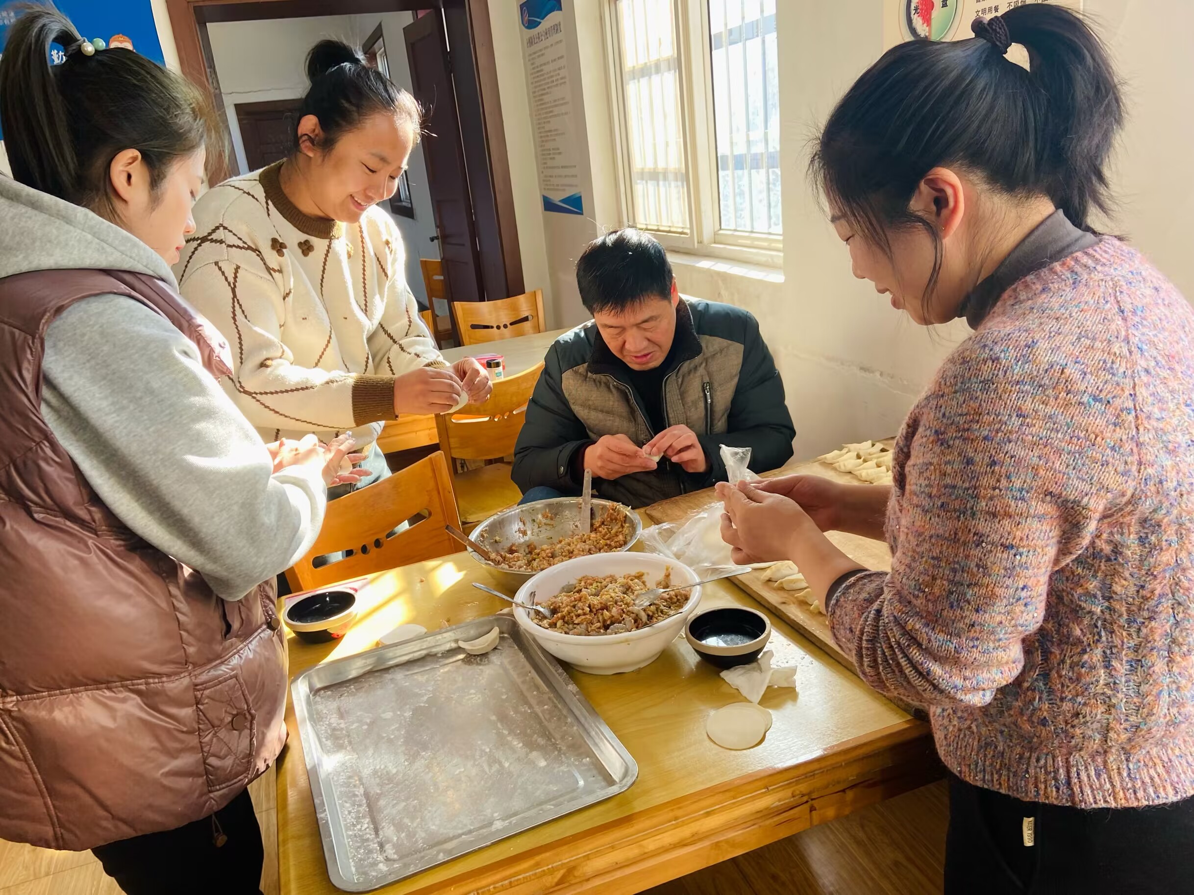 ? ? ? ?活動(dòng)現(xiàn)場熱鬧非凡,食堂早早為職工們備好了餃子餡兒和餃子皮,大家有說有笑,配合默契,有的負(fù)責(zé)拌餃餡、有的負(fù)責(zé)包餃子,忙得好不熱乎。大家一邊嘮著家常,一邊互相切磋包餃子的技巧,對比著各自餃子不同的形狀,有人包的是元寶狀,有人包的是小船狀,在一陣陣歡聲笑語中,口味不一的餃子就這樣展現(xiàn)在大家面前。當(dāng)一盤盤熱氣騰騰的餃子端上桌,食堂瞬間香飄四溢,能夠共同制作美食,吃著自己親手包的餃子,大家紛紛表示,今冬過上一個(gè)不一樣的冬至,感受到了“大家庭”的溫馨。