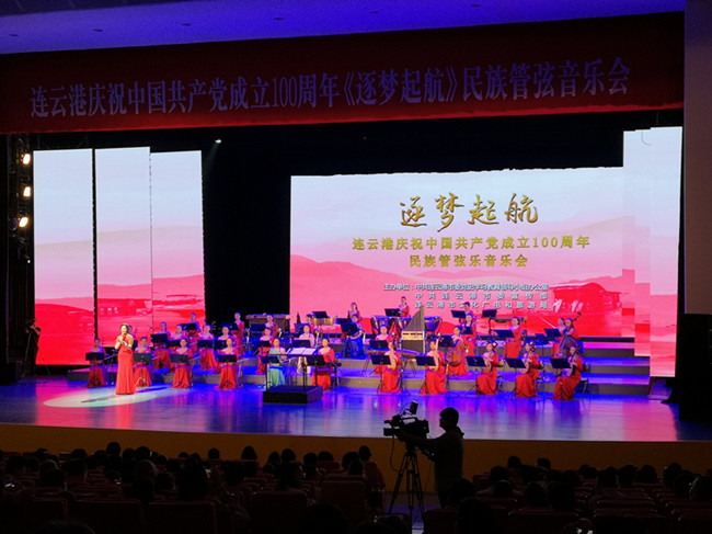 《逐夢(mèng)起航》連云港慶祝中國(guó)共產(chǎn)黨成立100周年大型民族管弦音樂會(huì),由中共連云港市委黨史學(xué)習(xí)教育領(lǐng)導(dǎo)小組辦公室、中共連云港市委宣傳部、連云港市文化廣電和旅游局主辦,連云港市演藝集團(tuán)承辦,演出單位是江蘇女子民族樂團(tuán)。音樂會(huì)分為《憶往昔崢嶸歲月》《舉旗幟山河復(fù)興》《再起航奮楫逐夢(mèng)》三個(gè)篇章,每個(gè)篇章以詩歌朗誦抒發(fā)時(shí)代情感,謳歌黨的光輝歷程。通過紅色旋律表達(dá)人民對(duì)黨的感恩之情,向黨的百年華誕獻(xiàn)禮。(神特宣)