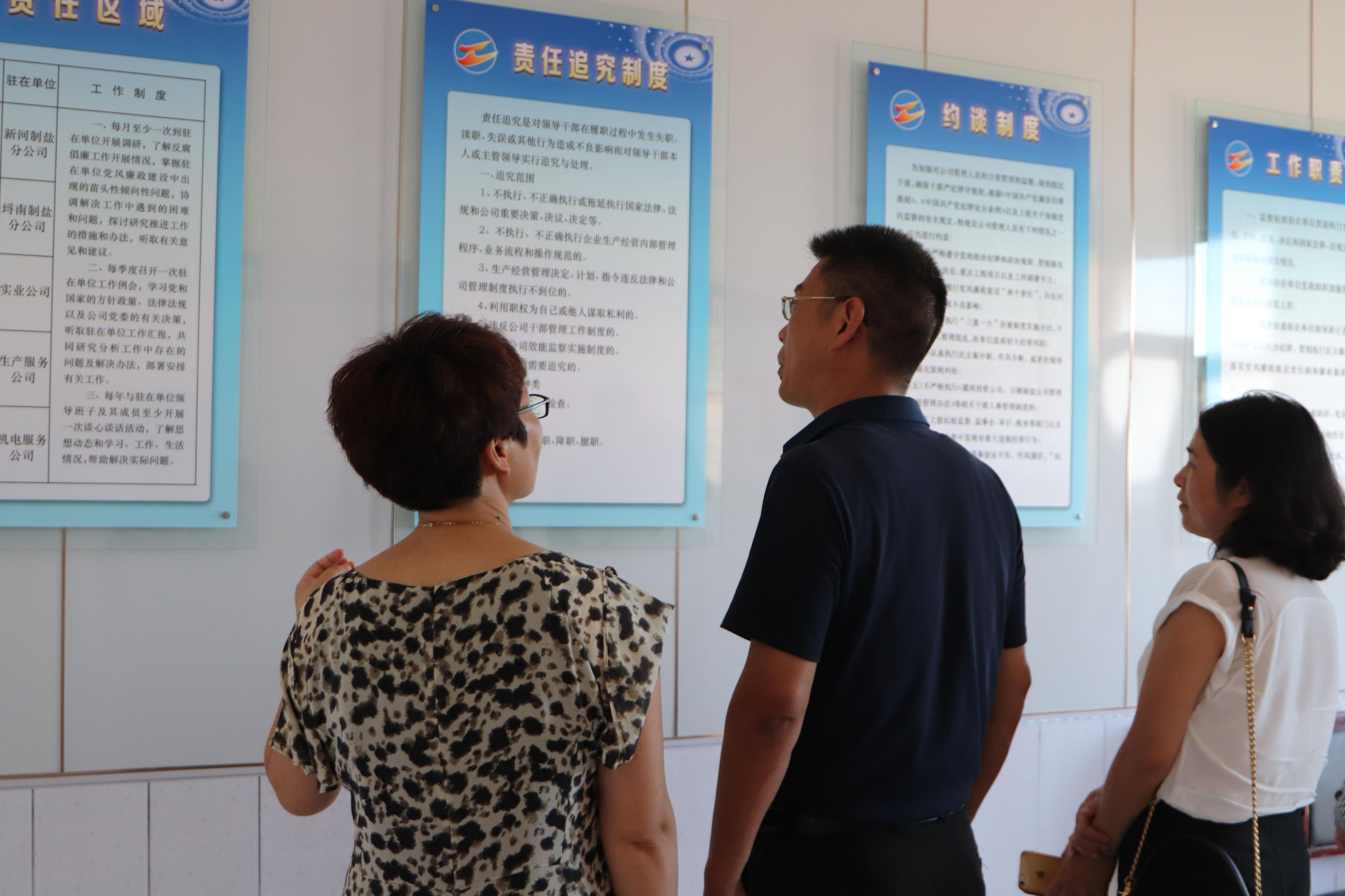 7月31日下午,神特公司與奧神新材料公司兩家紀(jì)檢干部結(jié)伴同行,前往灌西投資公司參觀學(xué)習(xí)。在灌西投資公司紀(jì)委書記王宏的陪同下,神特公司和奧神公司的紀(jì)檢人員參加了灌西投資公司經(jīng)營單位片區(qū)第二季度黨風(fēng)廉政發(fā)布會,聽取了二季度黨風(fēng)廉政建設(shè)情況,隨后觀摩了新河、埒南、西旺等支部黨建活動室,日曬制鹽片區(qū)、灌西經(jīng)營單位片區(qū)兩個派駐基層監(jiān)察室,查看了紀(jì)檢工作臺賬,并一同觀看了廉政微電影《鹽光》。