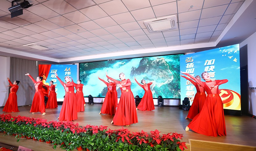演出在舞蹈《東方紅》中拉開序幕,隨后,一個個歡快、喜慶、祥和的文藝作品相繼上演。其中,既有“立志不定,終不濟事”情景表演《朱熹家訓》,講述身邊星級員工的感人故事,也有大氣磅礴的男女對唱《不忘初心》和小合唱《小美滿》,展現(xiàn)公司青春活力的詩朗誦《向最美致敬》,凝聚力量,充滿活力的舞蹈《不忘初心》,展現(xiàn)員工生產(chǎn)生活和身邊故事的小品《生產(chǎn)再忙 安全不忘》《沒事找事》,《創(chuàng)新發(fā)展當先鋒》為主題的曲藝表演三句半,體現(xiàn)職工精神風貌和抒發(fā)愛國之情的歌頌祖國的歌曲《紅梅贊》《把最美的歌兒唱給媽媽》《領(lǐng)航》《最美的太陽》……最后,在全體星級員工合唱的《沒有共產(chǎn)黨就沒有新中國》中落幕,高潮迭起、精彩不斷,得到廣泛好評。