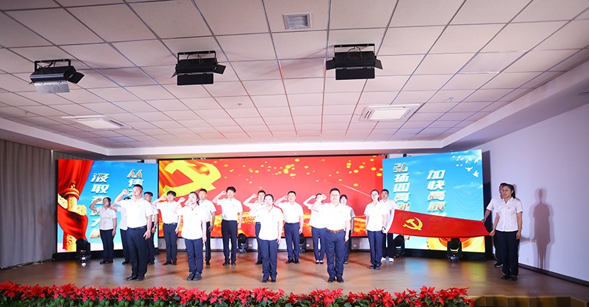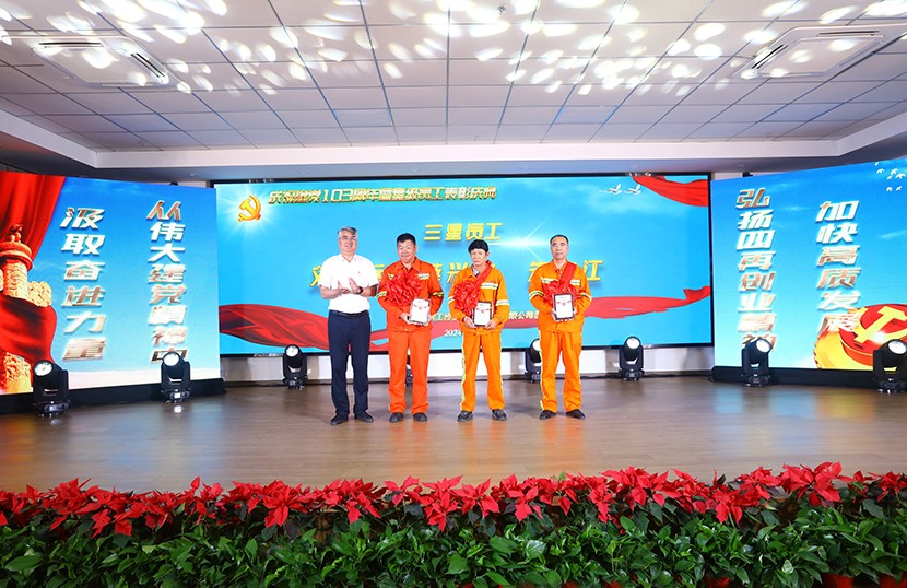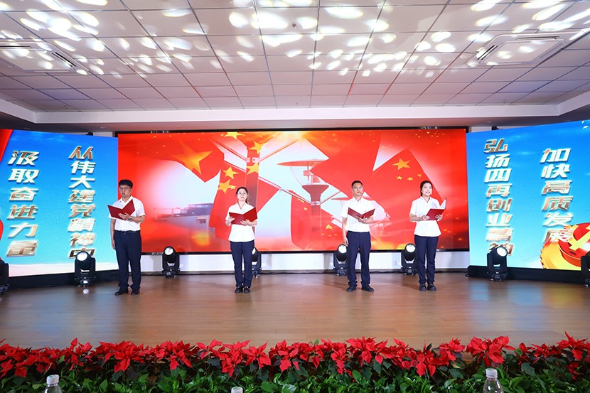 演出中,陳大壹、宋思雯、閆佳俊等十名新發(fā)展的中共預備黨員和新老黨員代表進行了現(xiàn)場宣誓,并合唱《我宣誓》。對公司黨委評選出的星級員工進行表彰,并對三星級員工進行了專訪。
