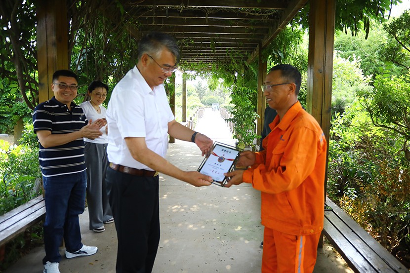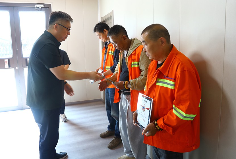 此次頒獎打破傳統(tǒng)集中表彰模式,將頒獎臺搬到生產(chǎn)建設(shè)最前沿,公司領(lǐng)導(dǎo)班子成員親自前往光伏安康驛站、創(chuàng)智綠園、大浦片區(qū)、云橋路施工現(xiàn)場、佟圩路施工現(xiàn)場、益豐園林園區(qū)6個一線點(diǎn)位,為獲獎員工頒發(fā)榮譽(yù)證書,并送上暖心祝福。當(dāng)公司領(lǐng)導(dǎo)將“星級員工”證書遞到員工手中時,獲獎?wù)唠y掩激動:“這份榮譽(yù)既是肯定,更是責(zé)任。我會繼續(xù)扎根基層,為臺北(華茂)貢獻(xiàn)全部力量!”